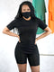 We are seriously crushin' on this biker shorts set this season and this style is at the top of our hit list. Featuring a Green jersey material and an elasticated waistline, team them with the matching Basic T-shirt and face mask. Stay Safe and Cute!