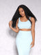 Switch up your sportswear look with this quality two piece active blue camo set. This two piece set has a thick stretchy material with a matching top. Style the matching crop top and chunky kicks or a classic heel to keep all eyes on you this season.