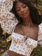We can't get enough of this corset bubble sleeve blouse. Add this to your weekend wardrobe. Featuring white silk material with square hem detailing and puff sleeves. Style with split hem jeans, barely-there heels and a ruched shoulder bag for a catch up with the dolls.